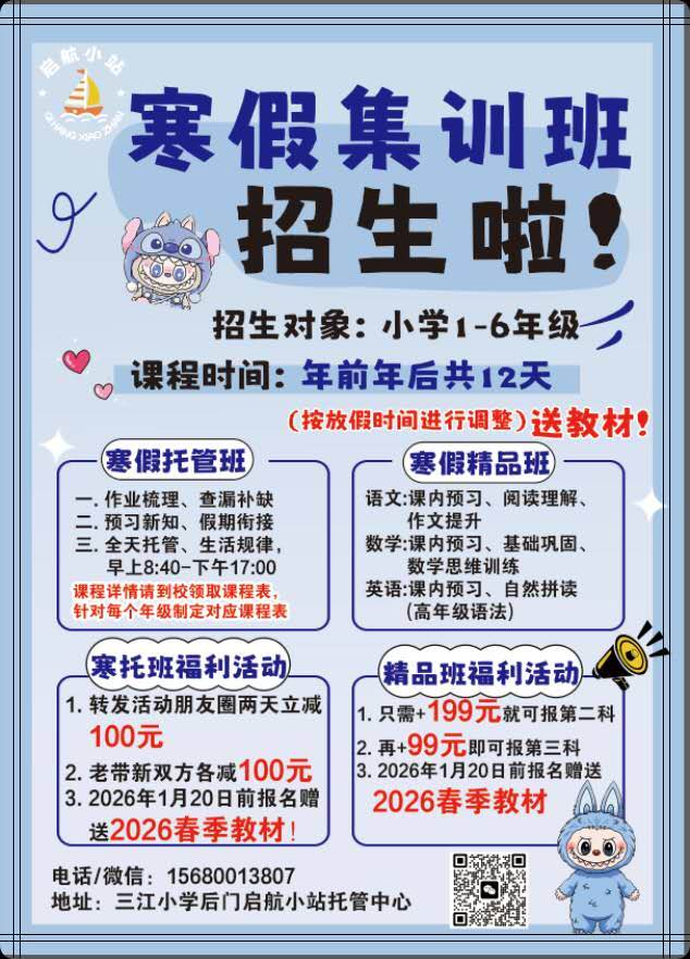 启航小站寒假集训班|超值报名通道开启!专