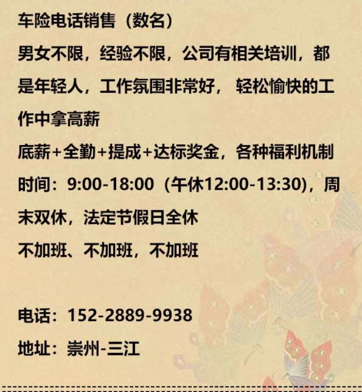 招聘销售精英 工作地点三江街上 周末双休